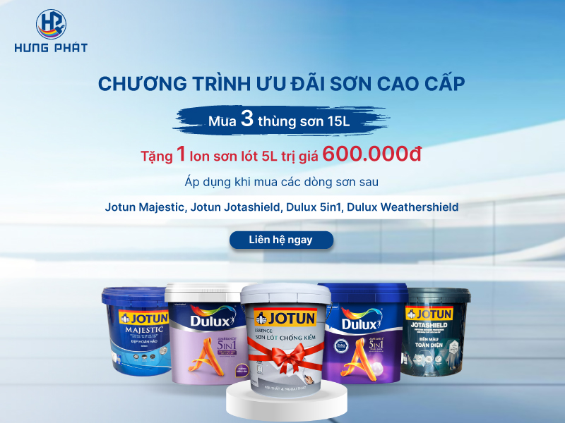 - Sơn Hưng Phát sẽ hỗ trợ chiết khấu 30% – 50% tuỳ sản phẩm trên giá tiêu chuẩn Dulux
