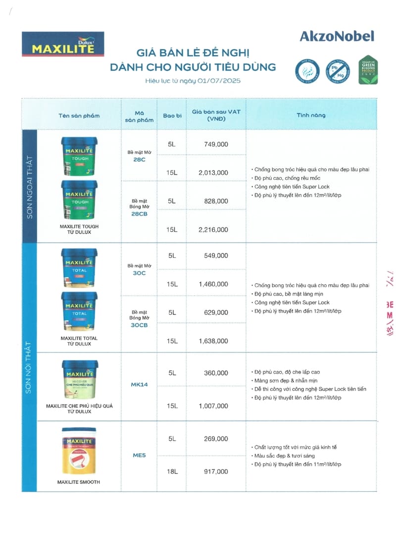 - An toàn cho sức khỏe và thân thiện môi trường: Dulux là một trong những thương hiệu tiên phong loại bỏ các chất độc hại như APEO, Formaldehyde và kim loại nặng khỏi thành phần sơn. Sơn Dulux có hàm lượng VOC thấp, gần như không mùi, an toàn cho sức khỏe của người thi công và người sử dụng.